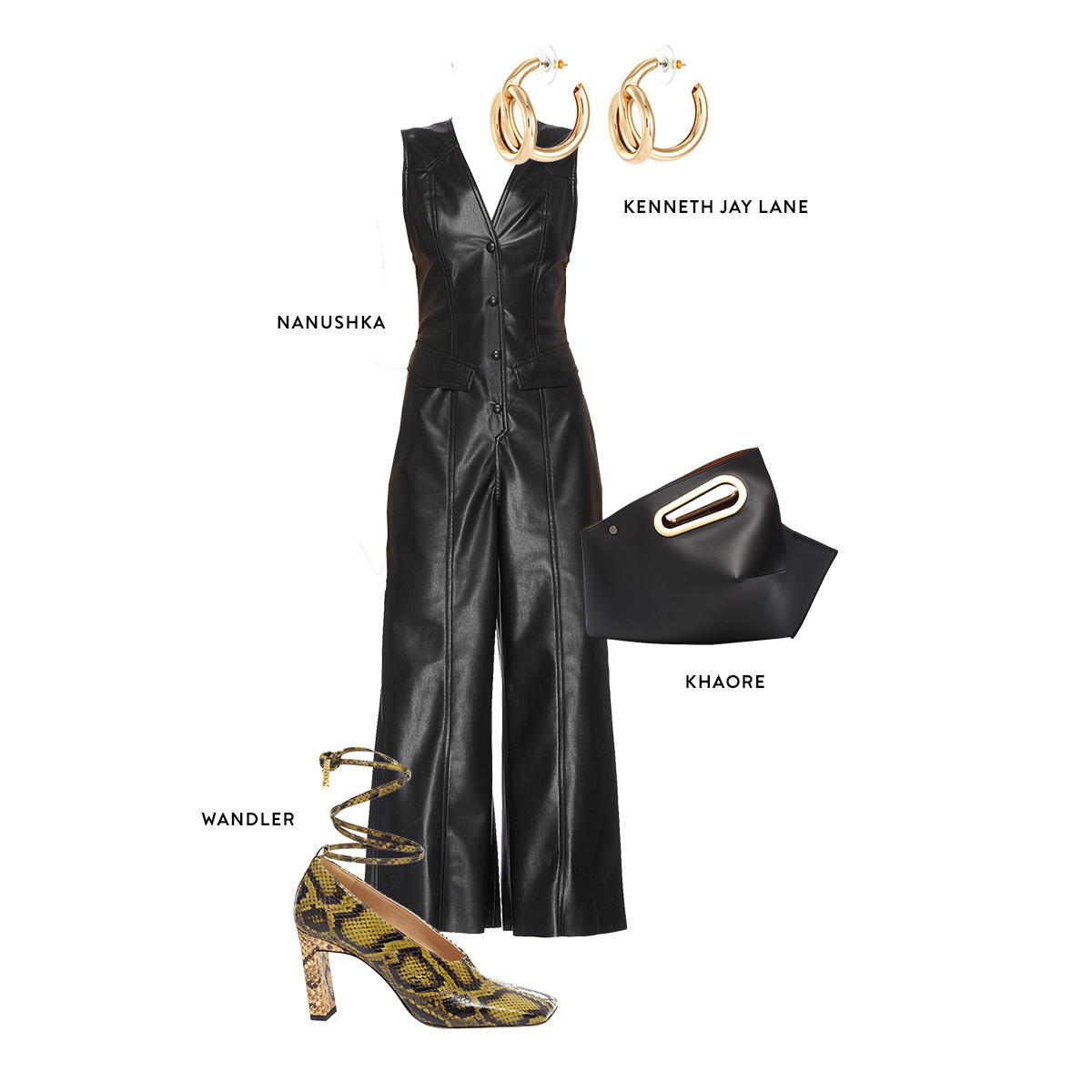 Keep your cool in all-black paired with a flash of python and metallic accents