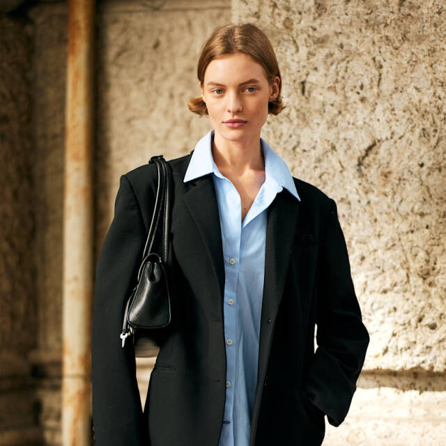Wearing the same colour head-to-toe is the quickest way to look pulled together. Simply open up the doors of your wardrobe, pull out pieces in a hue similar to your coat, and mix-and-match your separates for a cohesive effect. To add an extra layer of interest to your ensemble, opt for various textures in similar shades.