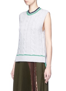 Demonstrating impeccable craftsmanship in their collection, 3.1 Phillip Lim breathes new life into the knitwear archive with this tank top that features a cable knit front and ribbed back. Polished with collegiate stripes at the collar and hem, this sleeveless piece will enliven looks with bold polish.