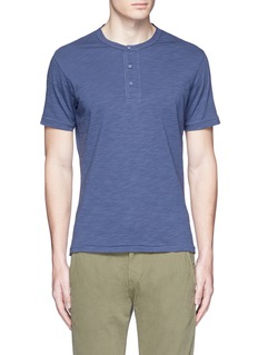 Ushered in cotton slub jersey to keep you cool on hot summer days, this Henley shirt is garment dyed and washed for comfy wear that feels even softer after every wear. Infinitely versatile in Aegean blue, this one is an ideal base for a staple downtime formula. Pair it with tan bottoms to pin down an effortless complete look.