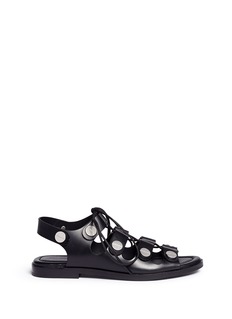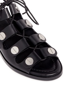 Toughen up your casual street attire with these Patricia sandals from Alexander Wang luxed up with rivets. Translating a biker style into footwear, this flat pair boasts solid comfort with a thoroughly cushioned insole and sensual allure with its open lace-up fastening. Cut low on the ankle, this durable calf nappa leather pair will stand the test of time for off-duty to after-work and weekend attire for years to come.