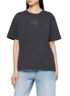 Washed organic cotton jersey gives this relaxed T-shirt a softened, lived-in feel, while a medium-stacked embossed logo is traced with tonal crystal hotfix for subtle shine. A signature of alexanderwang, it brings understated impact to everyday looks—effortless with denim or layered under tailoring.