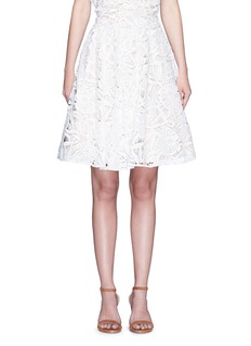 Anchored by a structured hem to uplift its flared silhouette, this Earla skirt from alice + olivia sits high on the waist to deliver a polished yet unapologetically playful aesthetic to any look. Delicate floral guipure lace is layered over a beige backdrop, drawing closer attention to this number's gamine approach.