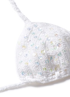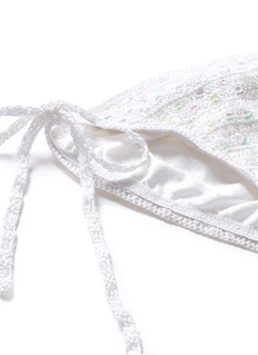 Known for its glamorously inclined beachwear and individual handcrafted designs, Anna Kosturova will have you wading deep into beach waters in style. This Starlet swim set is of no exception, showcasing iridescent sequins detailed across the front for subtle glimmer against the brilliant sun. Fully customisable with self-tie straps, this pair transforms the classic triangle bikini with time-honoured customary roots in high-quality cotton crochet.