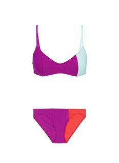 With the designer's meticulous attention to colour and fit, this Elsa bikini set defines Araks brand aesthetic with streamlined silhouettes. Utilising colourblocking in vivid icy and warm hues, this duo features full coverage low-riding bottoms and a non-padded, soft V-neck top for seamless comfort.