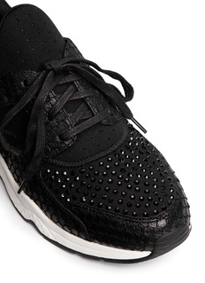 Elevated with perforated neoprene to comfortably keep you on your feet from day to night, these Mood sneakers from Ash are edged with snakeskin-effect trims to add an exotic twist to your athleisure sets. Made unique by way of hot fixed crystals dappled along the vamp, these ones will add a little glitter to your stride.