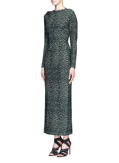 Screened in deep racing green and white for a look bestowed with measured confidence, this Asteroide dress from Azzedine Alaïa is one for the discerning style enthusiast. This jacquard knit piece features a shattered squiggle pattern and is milled in dense stretch fabric to ensure a surreptitious slim fit.