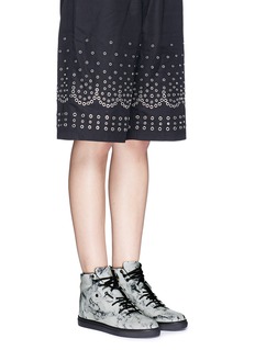 Downtime dressing receives a welcome upgrade with architectural appeal in these high tops from Balenciaga. These sneakers are a clean-cut essential, inspired by the print of the moment - marble. Padded at the collar and with a hardy 9-eyelet lace-up front, this pair is bound to elevate your weekend armoury.