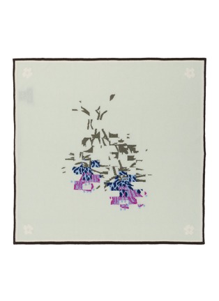 This Barrie square scarf, crafted from the finest cashmere, offers a refreshing take on luxury accessories. It features a soft cream base elegantly adorned with an abstract print in shades of blue and purple, adding a vibrant and artistic touch. The intricate detailing and soft hues create a versatile piece that can elevate both casual and formal outfits.