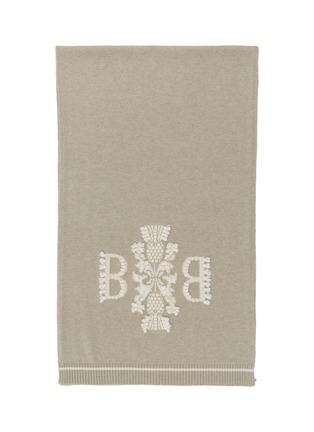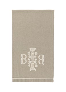 Discover the epitome of understated elegance with this Barrie scarf, meticulously crafted from luxurious cashmere. This scarf features a neutral taupe color that provides a versatile backdrop for the beautifully embroidered 'B' and intricate floral design in a contrasting white thread. The fine craftsmanship is evident in the detailed motifs and the soft, ribbed edges that add a touch of texture.