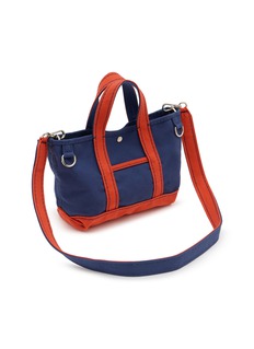 Brighten your day with this playful canvas tote from Baz & Friends. The bag features a deep blue hue with a pop of orange, sturdy handles, and a convenient crossbody strap for versatile carrying. The signature Baz & Friends patch adds a charming touch, making it perfect for everyday errands or a fun day out.