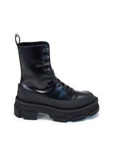 Paris-based label both combines natural rubber materials with cutting-edge technologies to present these Gao combat boots. Crafted from a tasteful combination of leather and rubber and detailed with a laced-up guard and a chunky outsole, this pair will lend your ensembles an alluring neoteric aesthetic.