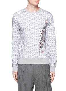 Mimicking the soft and intimate look of the classic cable knit with a dizzying print, this sweatshirt from Carven is sure to invite admiration in close quarters. Made pragmatic by way of its cotton fabrication, this layer is enhanced by colourful embroidery that will add a playful element to your summertime sets.