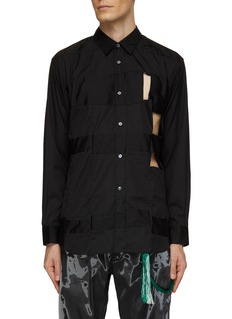 This avant-garde masterpiece features daring cut-out details that add an edgy and unconventional twist to a classic silhouette. With its impeccable craftsmanship and innovative design, this shirt embodies the spirit of Comme des Garçons SHIRT's boundary-pushing aesthetic.