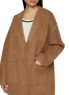 The Crush Collection coat wraps you in ultra-plush bouclé fabric, offering a cosy yet stylish silhouette. With its relaxed fit, V-neckline, and contrast trims, this piece effortlessly blends comfort and contemporary edge. Perfect for elevating your off-duty wardrobe with a touch of luxury.