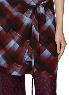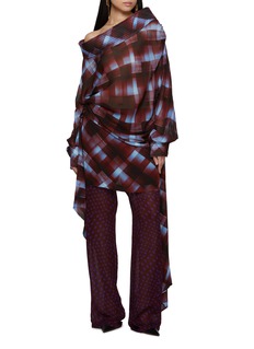 Blurring the line between skirt and trouser, these wide-leg pants feature an attached draped overlay in a bold chequered print. Crafted from fluid viscose, the layered silhouette channels Dries Van Noten’s artful experimentation with movement and form.