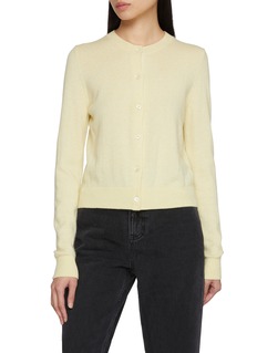 Emanating a delicate charm, this DUNST cardigan in a soft pastel yellow offers a refreshing addition to your knitwear collection. Crafted from sumptuous fabric, it features a classic button-down front, complemented by ribbed detailing at the cuffs and hem for a snug fit. Its lightweight feel makes it perfect for layering over dresses or pairing with denim for a relaxed yet chic look.
