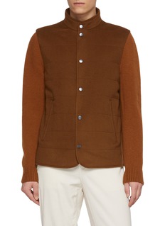 A versatile essential from EQUIL, this hybrid jacket blends a cosy, robust body with knit sleeves for effortless style and warmth. The rich rust hue and minimalist design make it a wardrobe staple, perfect for layering or wearing alone.