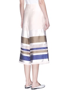 Constructed with the mastery of technique, these semi-couture culottes from Italian designer Erika Cavallini embody the quintessential core of the brand - meticulous attention to detail, use of quality raw materials and 'made in Italy' value. Crafted from a luxurious silk blend, these lightly woven pants offer a fresh take on separates with variegated stripes in earthy hues, accented by indigo blue, metallic Lurex and sheer organdy.