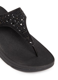 Catered for easy breezy resort styling, these Carmel flip flops from FitFlop are luxed up with a laser-cut suede T-strap and accented with dome studs. Biomechanically engineered to shape your foot with arch support, this pair is fortified with the label's original Microwobbleboard™ midsole for enhanced shock absorption and pressure-diffusing properties, keeping you comfortably on your feet all day long.