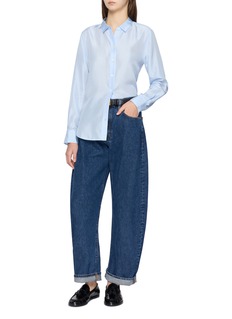 Cut from non-stretch cotton denim, this FRAME Bubble jean explores proportion through a softly curved outseam and a flattering high-rise waist. Designed to be worn cuffed at the ankle or left long, the sculptural silhouette relaxes beautifully as the fabric breaks in.