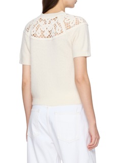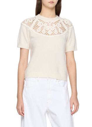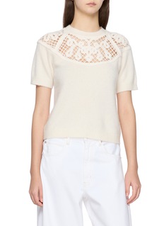 Delicately crafted in pure cashmere, this FRAME knit top is elevated by an intricate lace yoke that frames the neckline with subtle romance. Softly gathered short sleeves enhance the feminine line, making it an elegant choice worn alone or layered under tailored jackets.