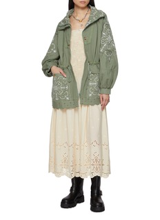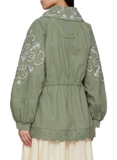 From the Bali collection, this cotton jacket is elevated with delicate embroidery, scalloped edges, and a drawstring waist for shape. The oversized collar adds charm, making it a versatile piece to slip over dresses or denim as the seasons shift.