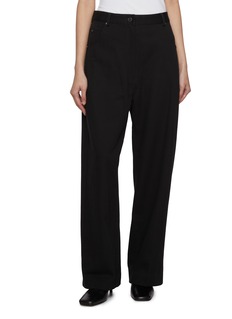 These Ravin pants by GIA STUDIOS fuse utilitarian denim codes with refined tailoring. Crafted from a breathable cotton-linen blend, the design features a structured high-rise waist and a subtle V-yoke back detail. Ideal for grounding minimalist looks with an effortless, sculpted line.