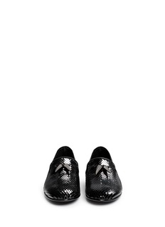 Step boldly into the new season with these slip-ons from Giuseppe Zanotti Design. Crafted from the brand's signature scale-effect leather to put style and performance on equal footing, this pair is primed for fashion-forward sets. Finished with a gleaming shark tooth charm, these ones are ideal for the modern man.