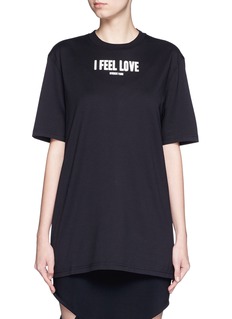 Trace the foundations of your wardrobe once more with this I Feel Love slogan tee from Givenchy. A classic cotton jersey piece, this one is charged with romantic enigma, via a coated slogan at centre front. This everyday staple is finished with Riccardo Tisci's signature 'T' seam at the back nape.