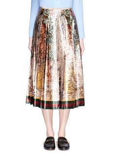 Tie in a new geographical language from ages past with this Gucci Sea Map skirt crafted of silk duchesse satin. Taking to an exotic adventure with its allover cartography print, this one weaves a modern world known to the brand with its signature contrast web stripe at the hem. Echo the runway look by pairing this number with an embroidered bomber jacket to instill extra tropical flavour.