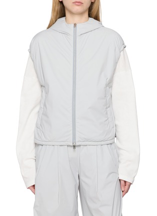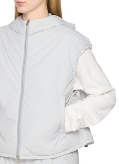 This Herno vest merges minimalist style with functional elegance, featuring a lightweight design for effortless layering. Its clean lines and versatile pale grey hue make it a refined, adaptable staple for urban and outdoor adventures.