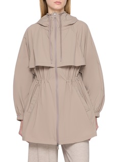 A study in refined functionality, this short parka by Herno distils utility into a softly sculpted silhouette. The layered storm flap and elasticated drawstring waist create movement and definition, while the hooded neckline frames the face with quiet precision. Ideal for in-between seasons and city escapes alike.