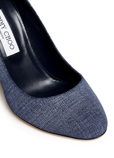 Drive utilitarian tactics to the core of your outfits with these Laria 100 pumps from Jimmy Choo. Purely influenced by urban denim with its indigo washed upper, this pair shows sensible, sturdy style with a natural chunky wood heel and modern appeal in a round-toed design.