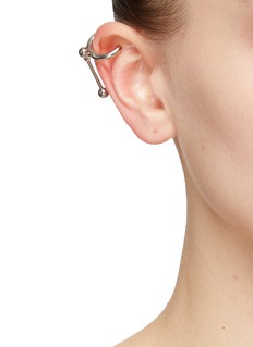 Justine Clenquet presents this ear cuff decorated with a beaded rod that resembles a punk-styled piercing. Artfully forged from silver-toned brass, the contemporary accessory will certainly be the perfect finishing touch to your minimal outfits.