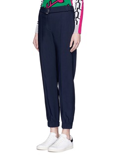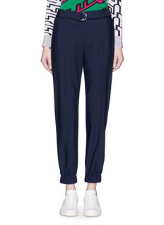 Akin to jogging styles, KENZO's twill pants are reimagined in fluid twill for a sense of sartorial punctuation. Deftly wound with a sash belt that can be looped to suit your needs with its D-ring fastenings, this pair features an elastic back waist and cuffs to keep classical grounding.