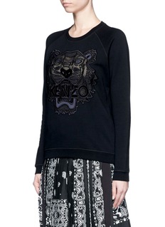 Swap out your average sweatshirts with KENZO's signature tiger embroidery edition. Fronted with sheer mesh inserts, this cotton jersey throwover will catapult your style with noticeable branding, and will translate your adventurous spirit with sensually sporty insouciance.