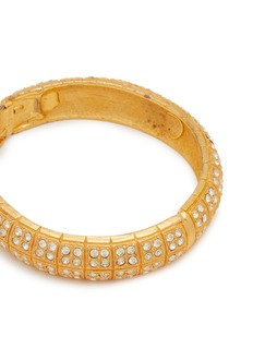Embrace 1950s luxurious glamour with this extraordinary Dubin hinged bracelet that epitomises mid-century sophistication and sparkling elegance. The full pavé crystal coverage creates mesmerising brilliance across the structured bangle silhouette, whilst the geometric grid pattern showcases precision-set rhinestones in perfect symmetry. This statement piece features exceptional vintage craftsmanship with secure hinge mechanism and lustrous finish. Perfect for adding authentic period drama to evening ensembles or elevating contemporary looks with timeless Dubin artistry and Old Hollywood glamour.