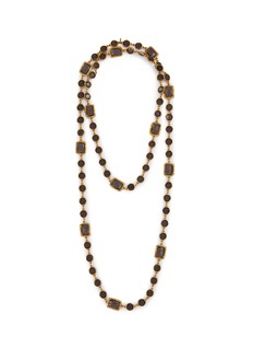 Embrace the sophisticated allure of 1980s Chanel through this exceptional necklace featuring the maison's iconic chicklett design in lustrous crystal. The alternating round and rectangular stones create captivating geometric rhythm, whilst the substantial length offers versatile styling options. This museum-quality piece represents Chanel's mastery of statement jewellery from the height of 1980s luxury.