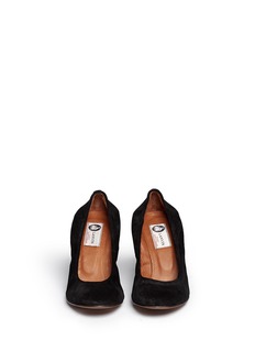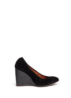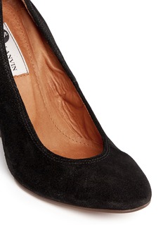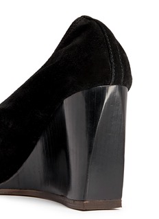 Lanvin channels feminine aesthetics with a practical edge in these wedge heel pumps. Made from suede and given a wearable 3.7” wooden heel, this pair features the signature elasticated topline for a secure wear from day to night.