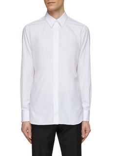 Elevate your formal attire with the Lardini's evening shirt featuring French cuffs. The crisp white fabric sets the stage for the classic French cuffs, adding a touch of sartorial flair.