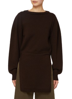 The LEMAIRE slit sweater redefines contemporary knitwear with its relaxed silhouette and side slits, blending comfort with a bold twist. The relaxed fit and ribbed details add a touch of effortless elegance, making it a versatile layer for everyday refinement.