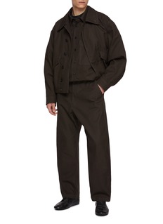 Favouring clean aesthetics, LEMAIRE presents these carrot pants, rendered in a rich brown hue. Its silhouette is defined by its relaxed, tapered leg, while its buckled side adjusters lend a utilitarian appeal to your look.