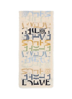 Elevate your wardrobe with LOEWE’s abstract typography scarf, a striking blend of layered letters and artistic flair. The soft, lightweight fabric and muted color palette make it a versatile accessory, perfect for adding a touch of modern sophistication to any ensemble. A subtle LOEWE logo completes this uniquely chic statement piece.