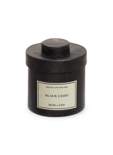 Housed in a black iron vessel, this Bougie Apothicaire Black Uddù candle from MAD et LEN is an interpretation of cubic masks. Infused with rich notes of amber and patina, this one is grounded by a warm leathery, floral base.