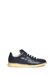 Defining vintage appeal through an undeniably artisanal lens, Maison Margiela cobbles these Replica sneakers in found leather sourced from the 70's for a classic redirection. Bringing courtside aesthetics to the table with sporty topstitching, this pair ensures that your first step into the new age is carried by gleaming soles.