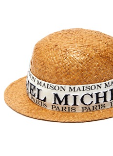 Maison Michel presents this Rie raffia hat, adorned with an eye-catching logo band around its brim, and completed with a short bill, making it an ideal summer accessory that can be styled with your holiday and urban edits alike.