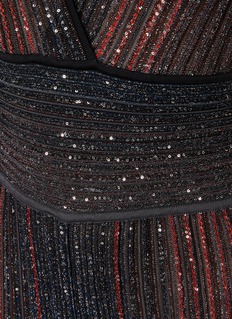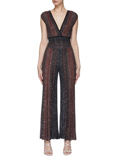 Missoni presents this jumpsuit, screened in the brand's signature stripe pattern. Defined by the cinched waist and deep V-neck construction, this garment is covered in sequins to channel the boho glamour into your edits.