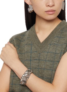 Sculpted in a jagged, rock-inspired silhouette, these MM6 Maison Margiela earrings reinterpret nature into a gleaming form. Cast in polished brass, their asymmetric presence offers a bold statement—perfect for elevating minimalist tailoring or eveningwear.