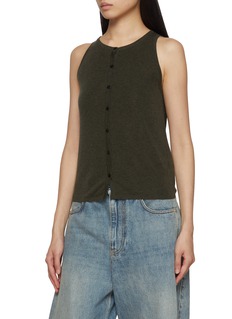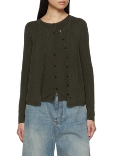 Rendered in deep olive, this MO&Co. layered wool set brings a modern edge to a timeless silhouette. Comprising a sleeveless top and matching cardigan, its lightweight wool construction offers year-round versatility—perfect for tonal dressing or contrasting with denim and leather.